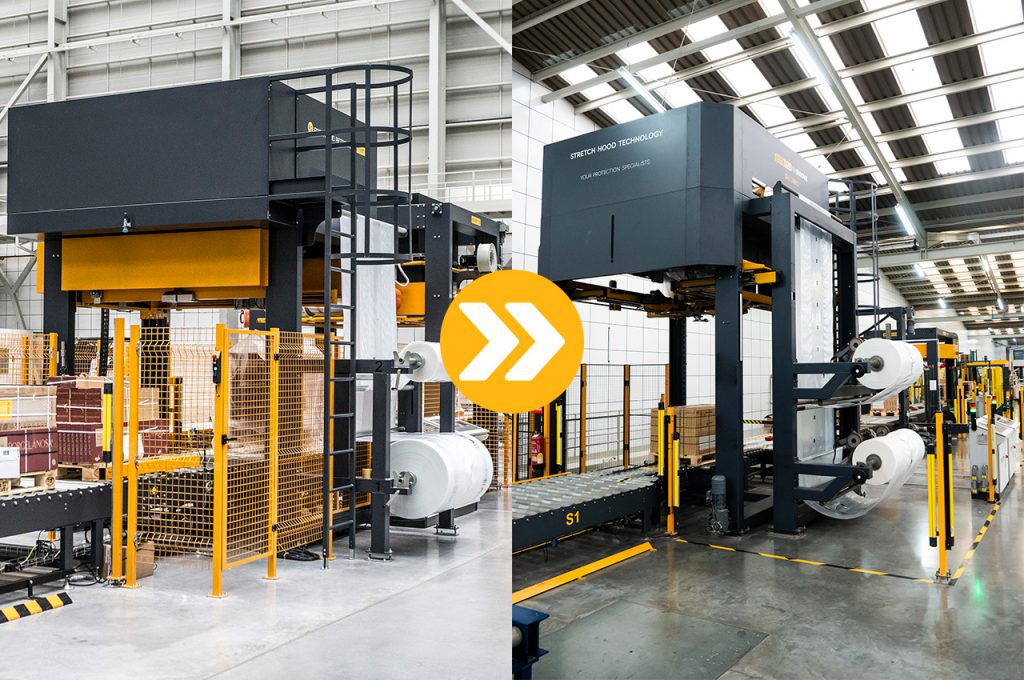 - Embalagem mais sustentável: Tecnologias como o pré-estiramento e os ciclos de embalagem personalizados das envolvedoras automáticas, ou o uso de um único filme para cobrir toda a carga no Stretch Hood, alinham as empresas com os objetivos de sustentabilidade da indústria. Além da possibilidade de utilizar consumíveis recicláveis e reciclados.