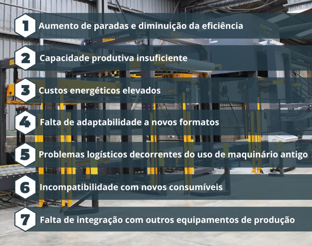 Se o seu sistema sofre continuamente com paradas não planejadas para manutenção, ajustes ou reparos, a produtividade e a eficiência da linha diminuem de forma proporcional. Essas interrupções não se devem apenas ao desgaste de componentes, mas também a falhas imprevistas, falta de peças de reposição, desalinhamentos mecânicos, limitações do sistema de controle ou incompatibilidade com novos formatos de carga e consumíveis, ou seja, são as consequências de trabalhar com uma máquina obsoleta.